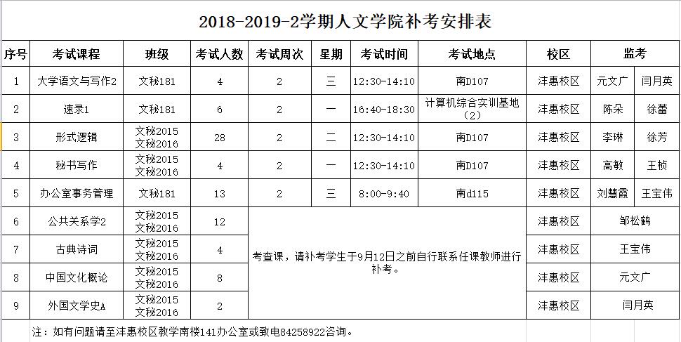 2018-2019-2人文公司补考安排表