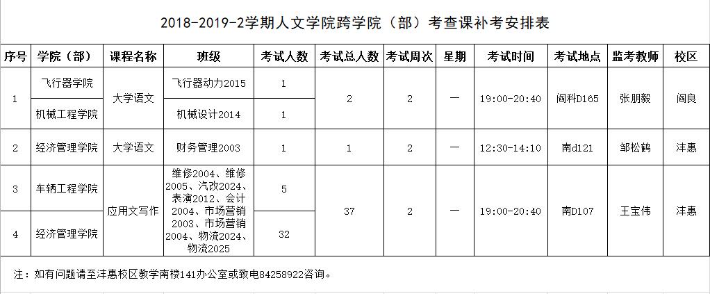 2018-2019-2人文公司跨公司(部)考查课补考安排表